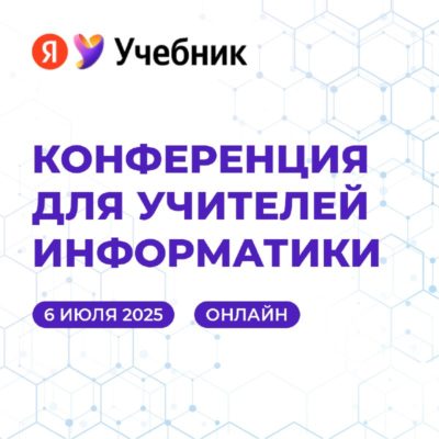 Не пропускаем полезную информацию! 6 июля пройдёт четвёртая онлайн-конференция от Яндекс.Учебника для педагогов информатики. Что будет в программе: — Четыре секции с мастер-классами от опытных учителей и экспертов EdTech. — Разбор практических методик для использования на уроках. Все зарегистрированные участники получат методические материалы и электронные сертификаты. Участие бесплатное. Подробная программа и ссылка для регистрации: https://clck.ru/3MMX33 […]