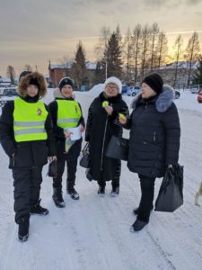 27 декабря школьные отряды ЮИД МАОУ СОШ №1 и МАОУ СОШ №2 вместе со своими руководителями и государственным инспектором по БДД ОГИБДД А.В.Жмурко провели перед началом зимних каникул районную акцию, направленную на профилактику дорожно-транспортного травматизма.