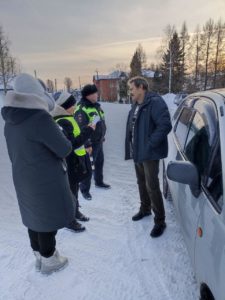 Неожиданным стало появление самого юного инспектора – дошкольника в месте проведения акции, возвращавшегося с детского новогоднего утренника.