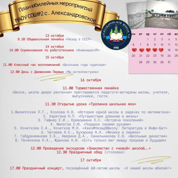 С 13 по 17 октября в МАОУ СОШ №2 пройдут мероприятия, посвященные празднованию знаменательного юбилея!