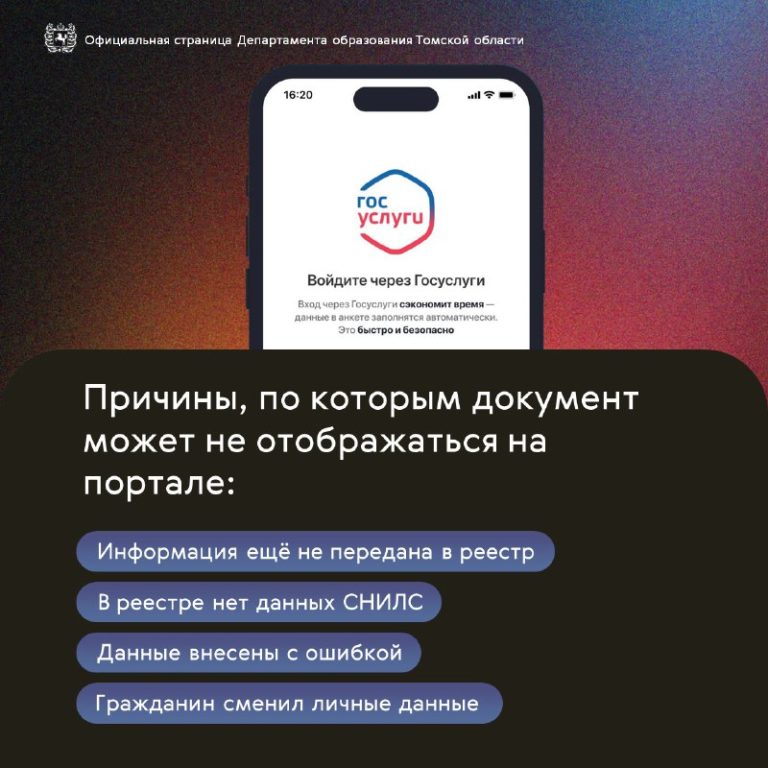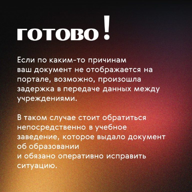 Данных нет в реестре: Обратитесь в учебное заведение, которое выдало документ.