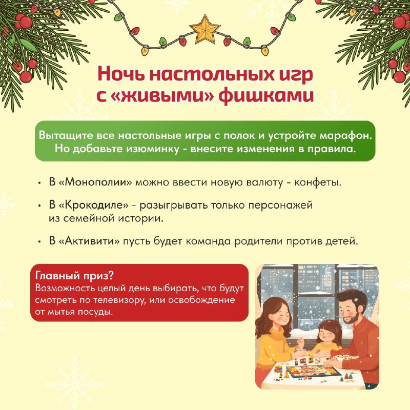 Выбирайте, что по душе вашей семье, комбинируйте и создавайте свои правила. Самое время отложить дела и насладиться общением с самыми близкими!