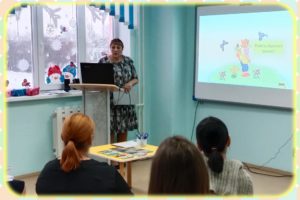 Старший воспитатель М.С. Андреева представила интерактивные игры и пособия на развитие пространственного мышления дошкольников портала «Мерсибо», которые использует в работе учителя-дефектолога с детьми с ОВЗ. Так же рассказала о современном оборудовании в детском саду – интерактивный образовательный пол Magium.