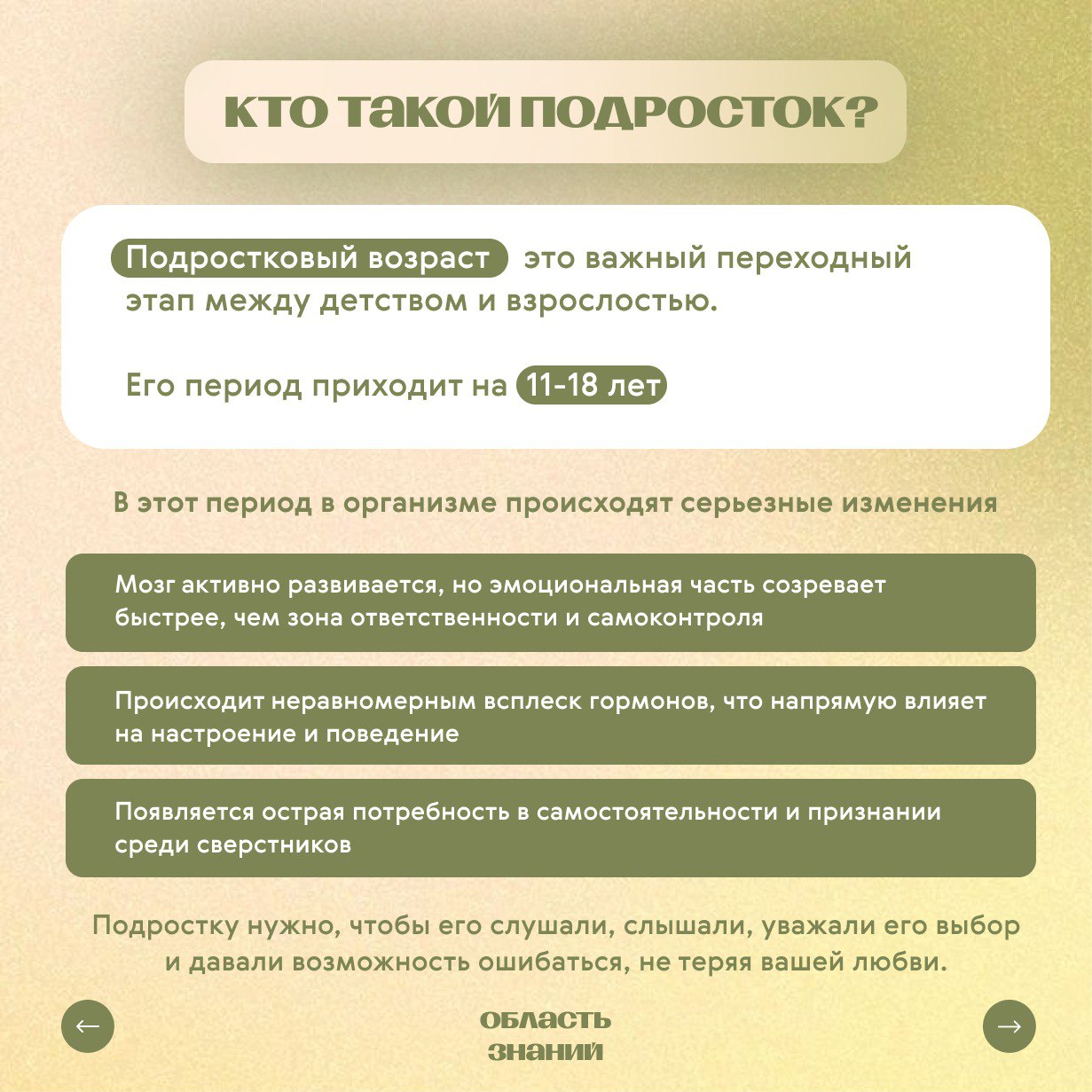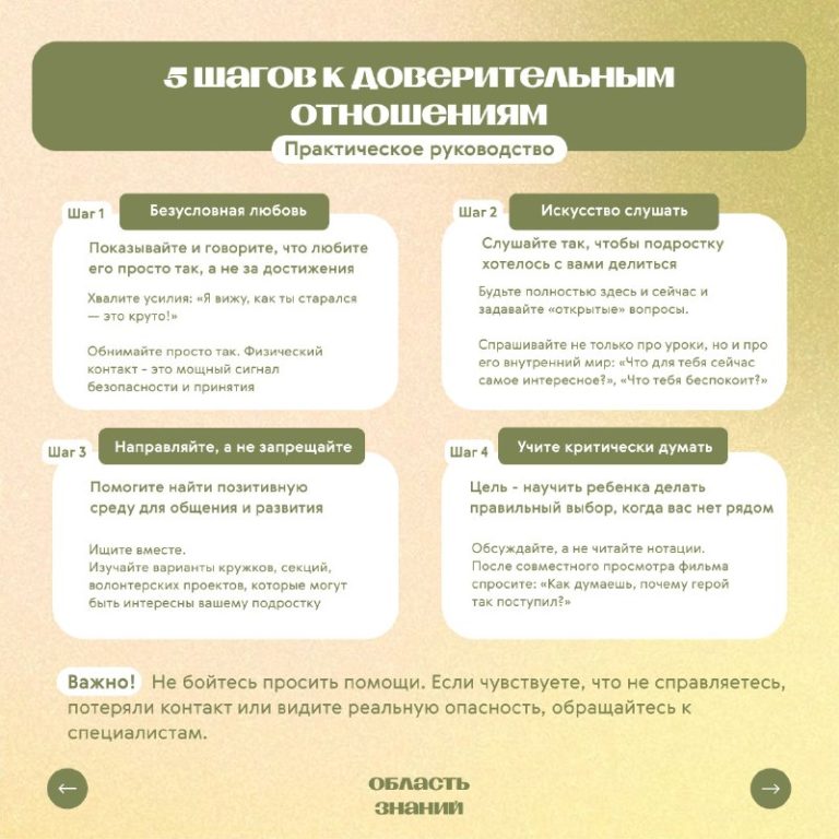 Мы часто чувствуем растерянность: как общаться, когда наш ребенок становится незнакомцем? Кричать, контролировать, читать нотации — не работает. Только отдаляет. Правда в том, что мозг подростка сейчас перестраивается так же интенсивно, как у космонавта перед полетом. Его бросает из стороны в сторону от гормонов, а потребность в вашей любви и поддержке никуда не исчезает. Мы сделали для вас практические карточки-памятки, основанные на советах психологов.